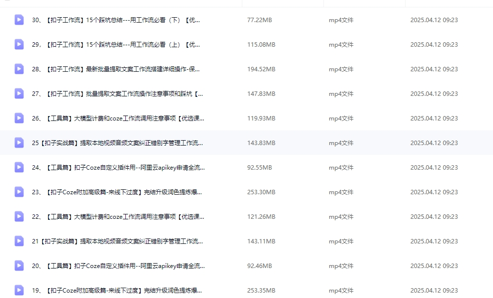 一些ai教程,coze工作流,豆包ai视频实战! 2025-11-14 AI教程 361 网盘爆满了,之前存的一些ai视频教程,需要的自行转存 Ai扣子coze自动化工作流 AI风向标《AI与视频制作全攻略:从入门到精通实战课程》 资源下载下载价格9.9 金币VIP免费立即购买 0